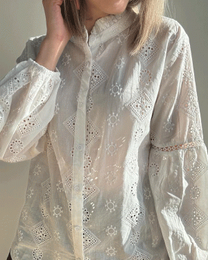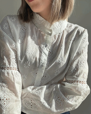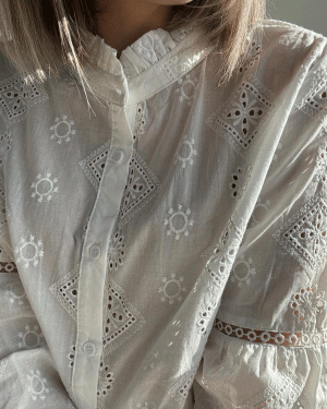 Camisa lisa troquelada de manga larga con cuello perkins.