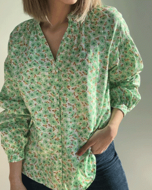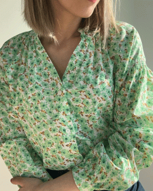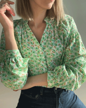 Camiseta estampada de cuello en forma de pico y manga larga.