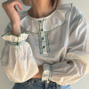 Camisa de rayas con solapa y manga larga y detalle de bolsillo delantero. Talla única.
