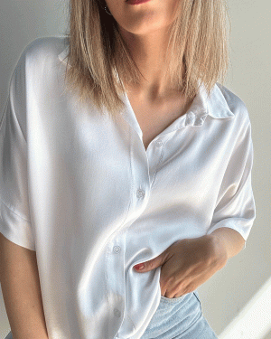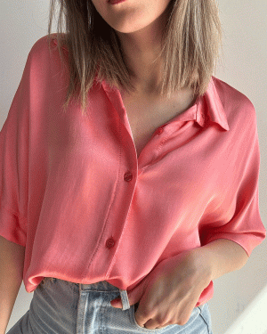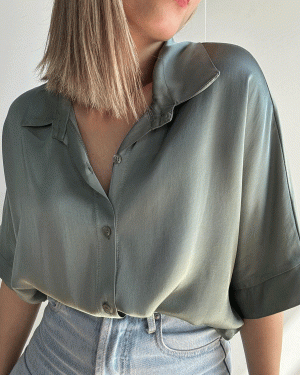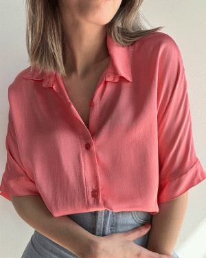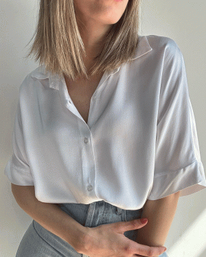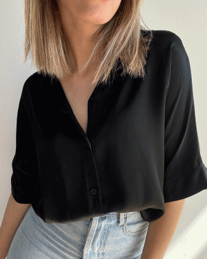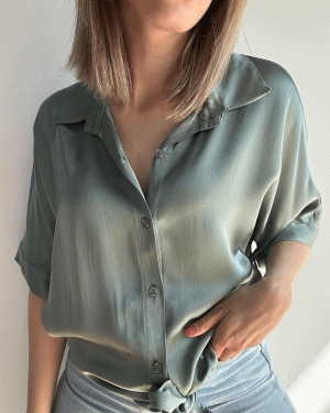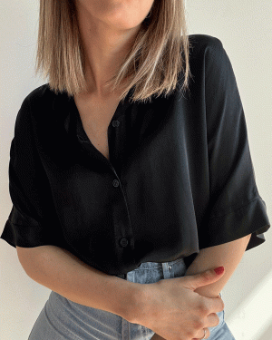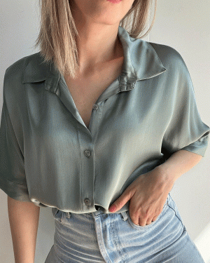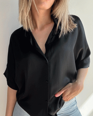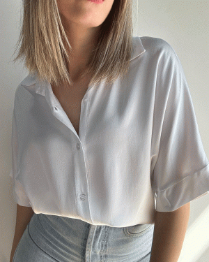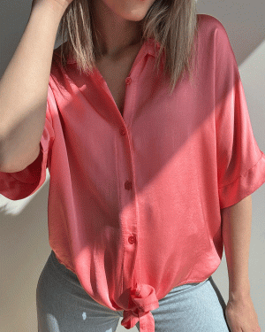 Blusa de manga corta con nudo delantero y cuello camisero.