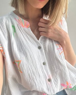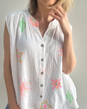 Blusa sin mangas con botones en la parte delantera. Talla única.
