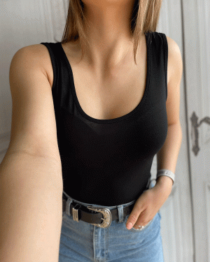 Camiseta básica de cuello redondo y tirante ancho.