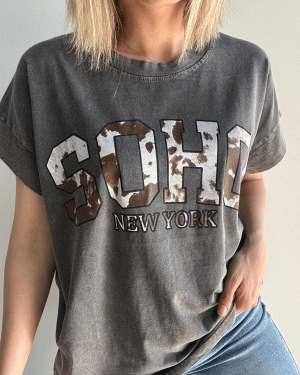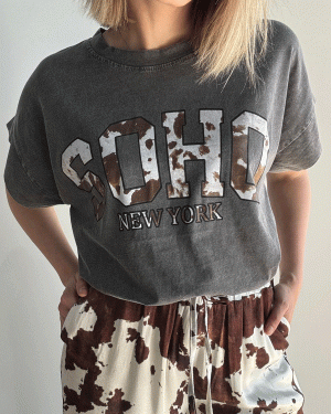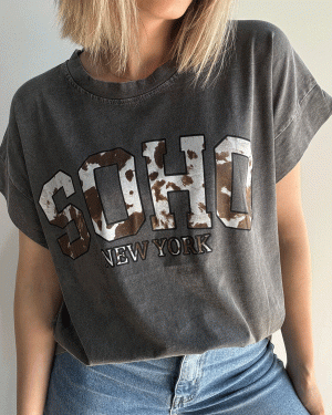 Camiseta de cuello redondo y manga corta con dibujo delantero. Talla única.