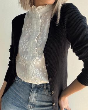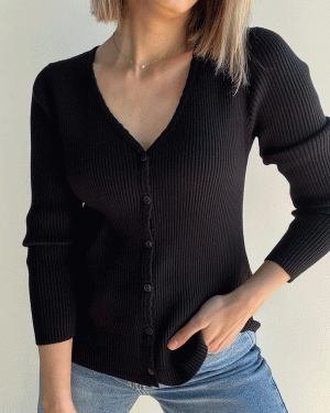 Chaqueta de canalé de manga larga con escote en forma de pico con detalle ondeado.