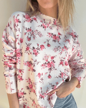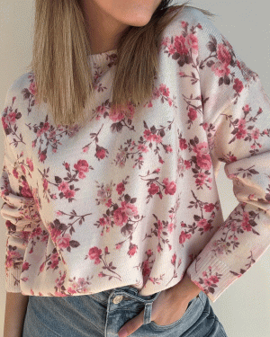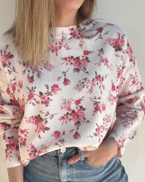 Jersey con escote redondo y manga larga con estampado floral.
