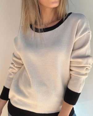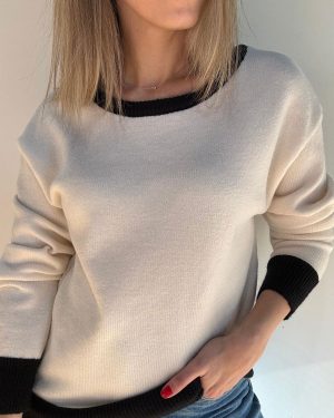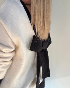 Jersey de cuello redondo y manga larga con detalle de lazo en la parte de la espalda. Contraste de ribete en otro color. Talla única.
