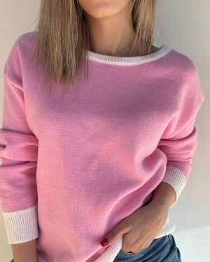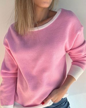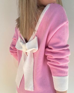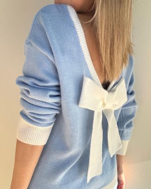 Jersey de cuello redondo y manga larga con detalle de lazo en la parte de la espalda. Contraste de ribete en otro color.