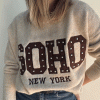 Suéter de manga larga con cuello estilo polo con botones delantero con letras en la parte delantera. Talla única.