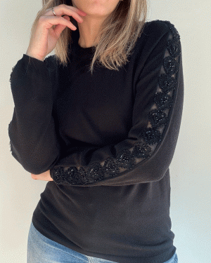 Suéter de manga larga con cuello redondo con detalle caladitos en la manga y con forma de corazones. Talla única.