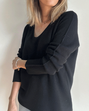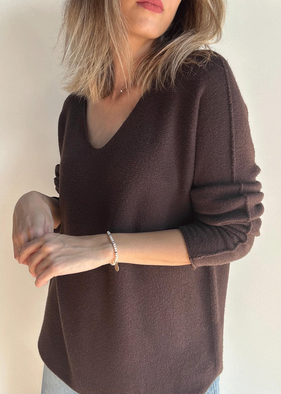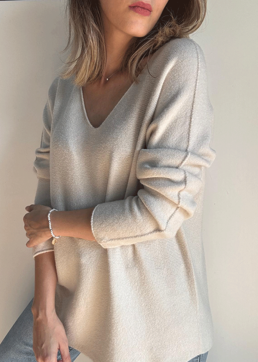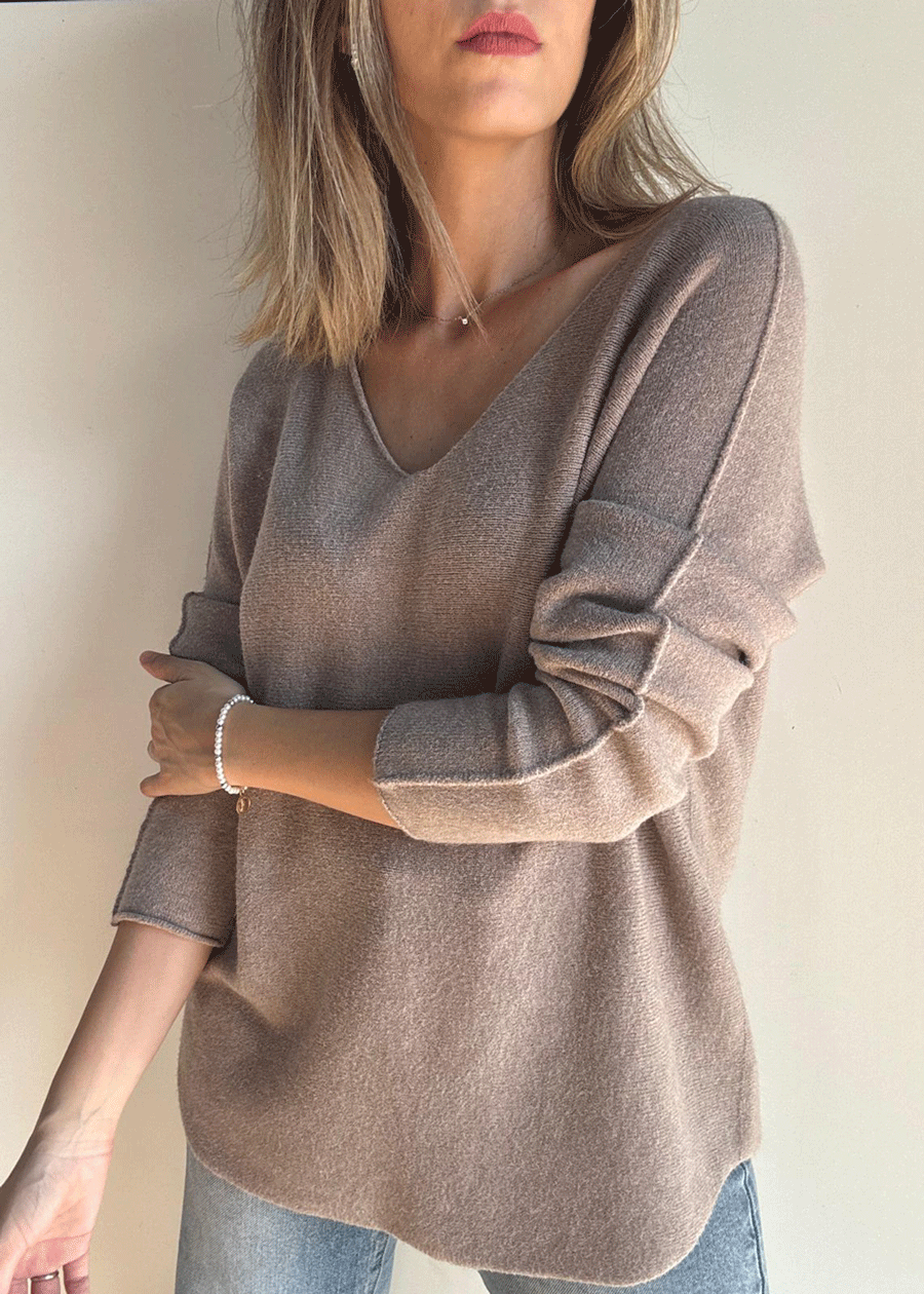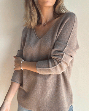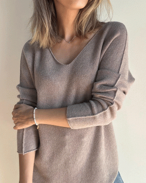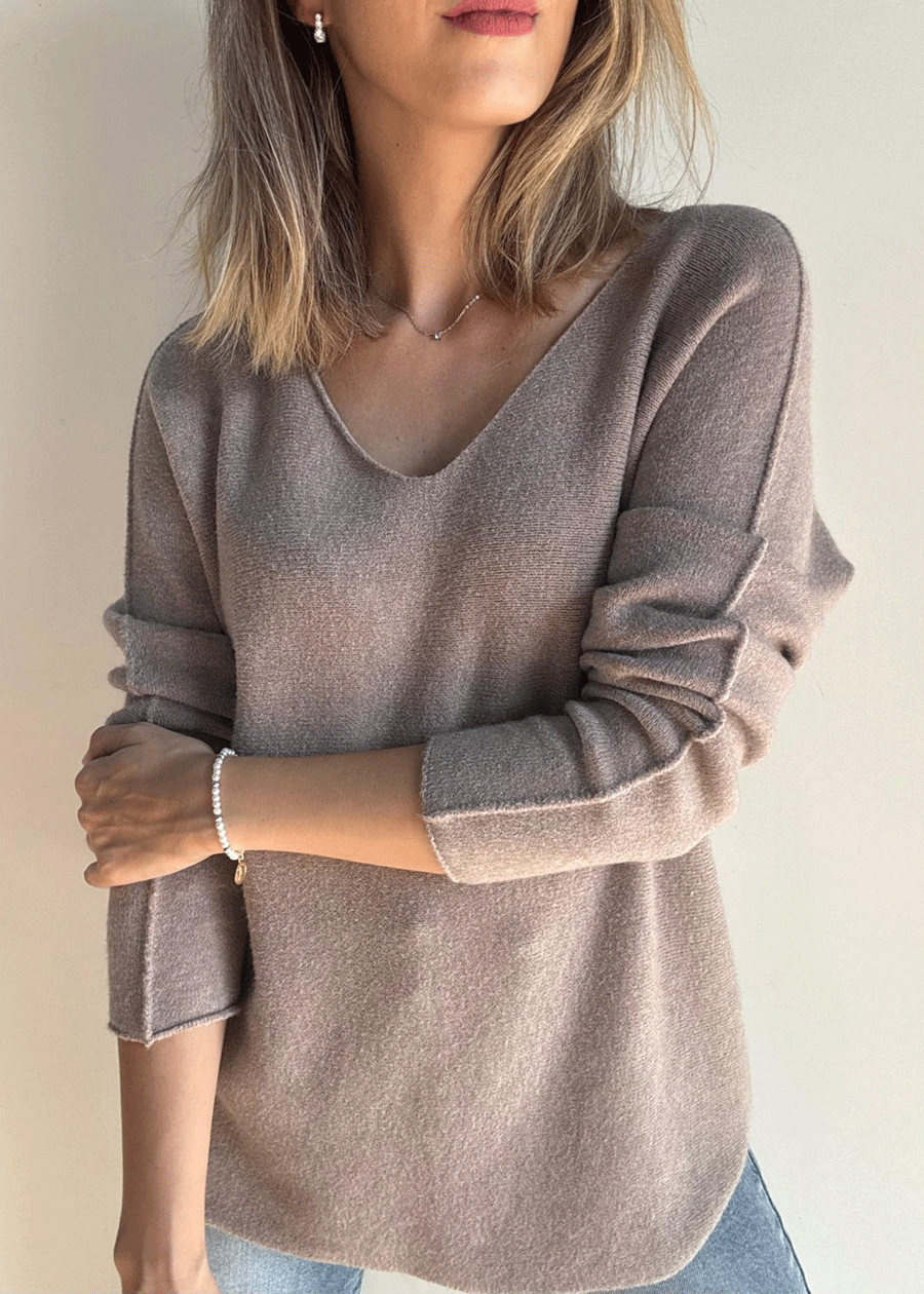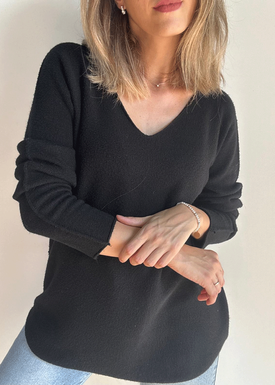 Suéter de manga larga con cuello pico y ribete en la manga.
