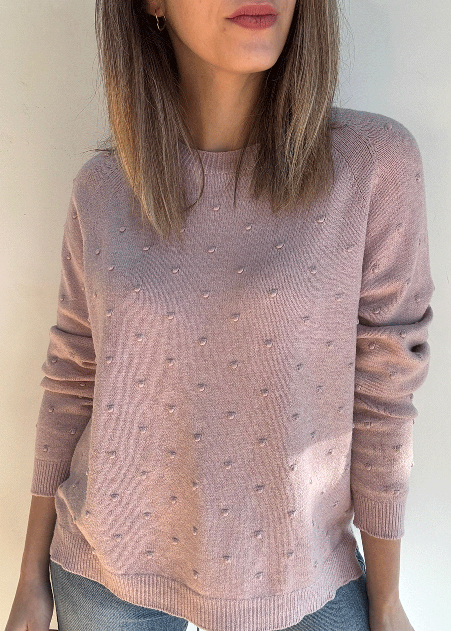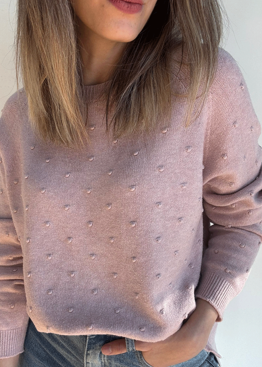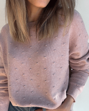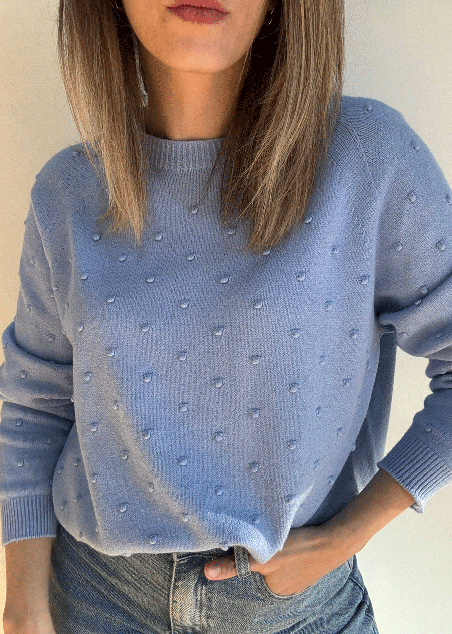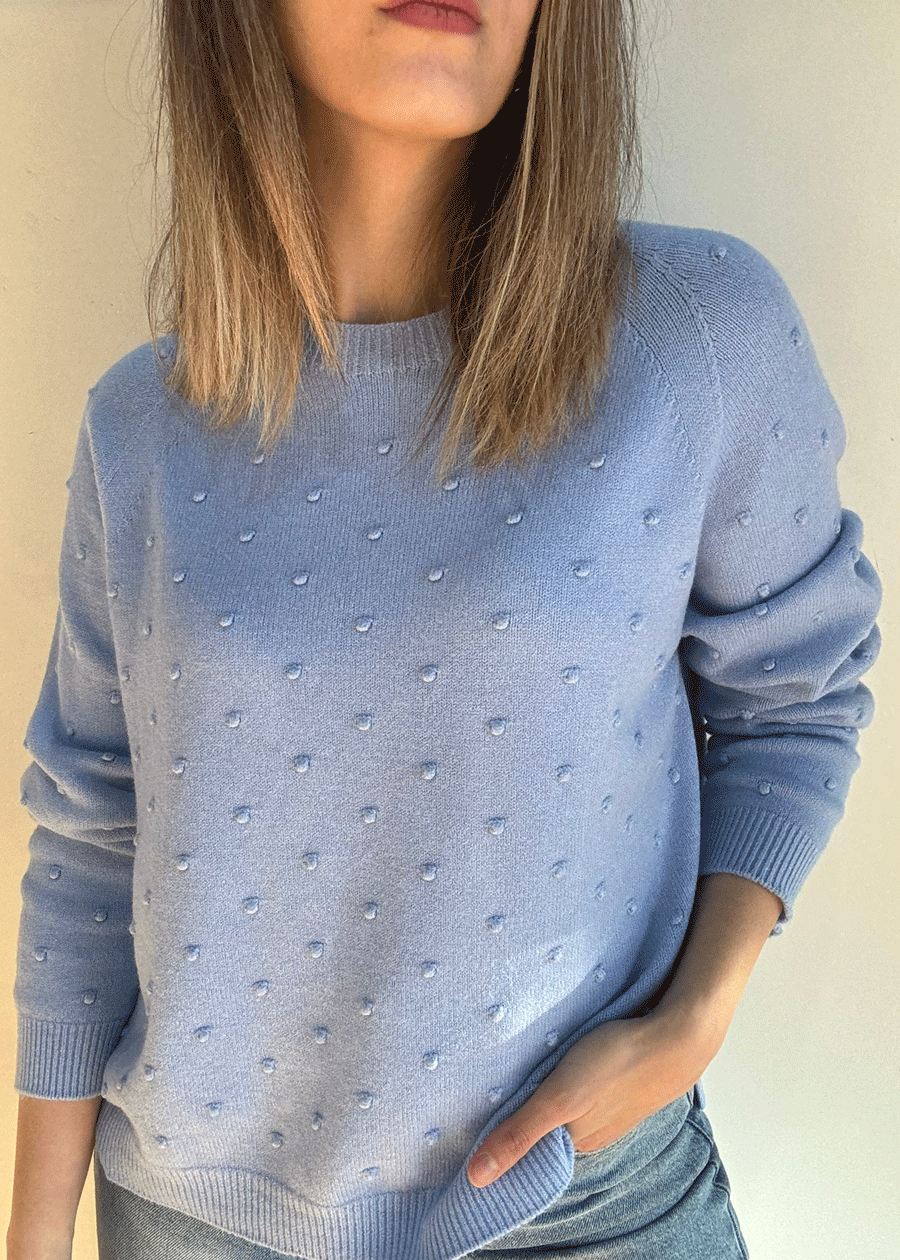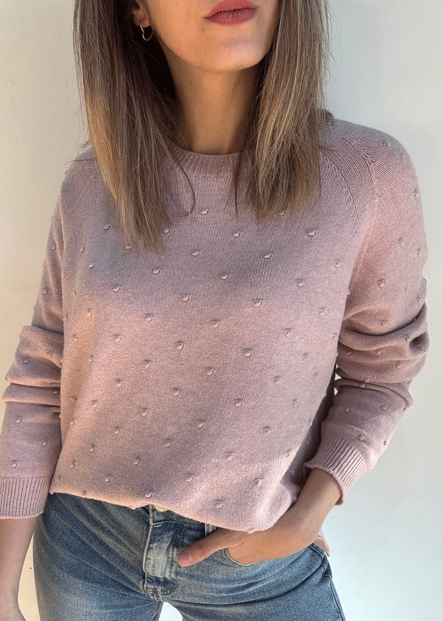 Suéter de manga larga con cuello redondo y detalle de puntitos.