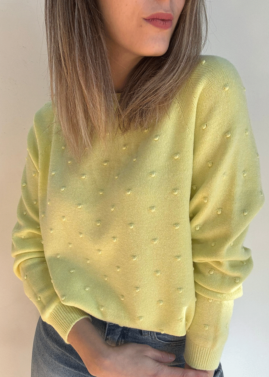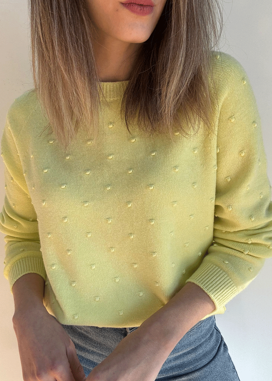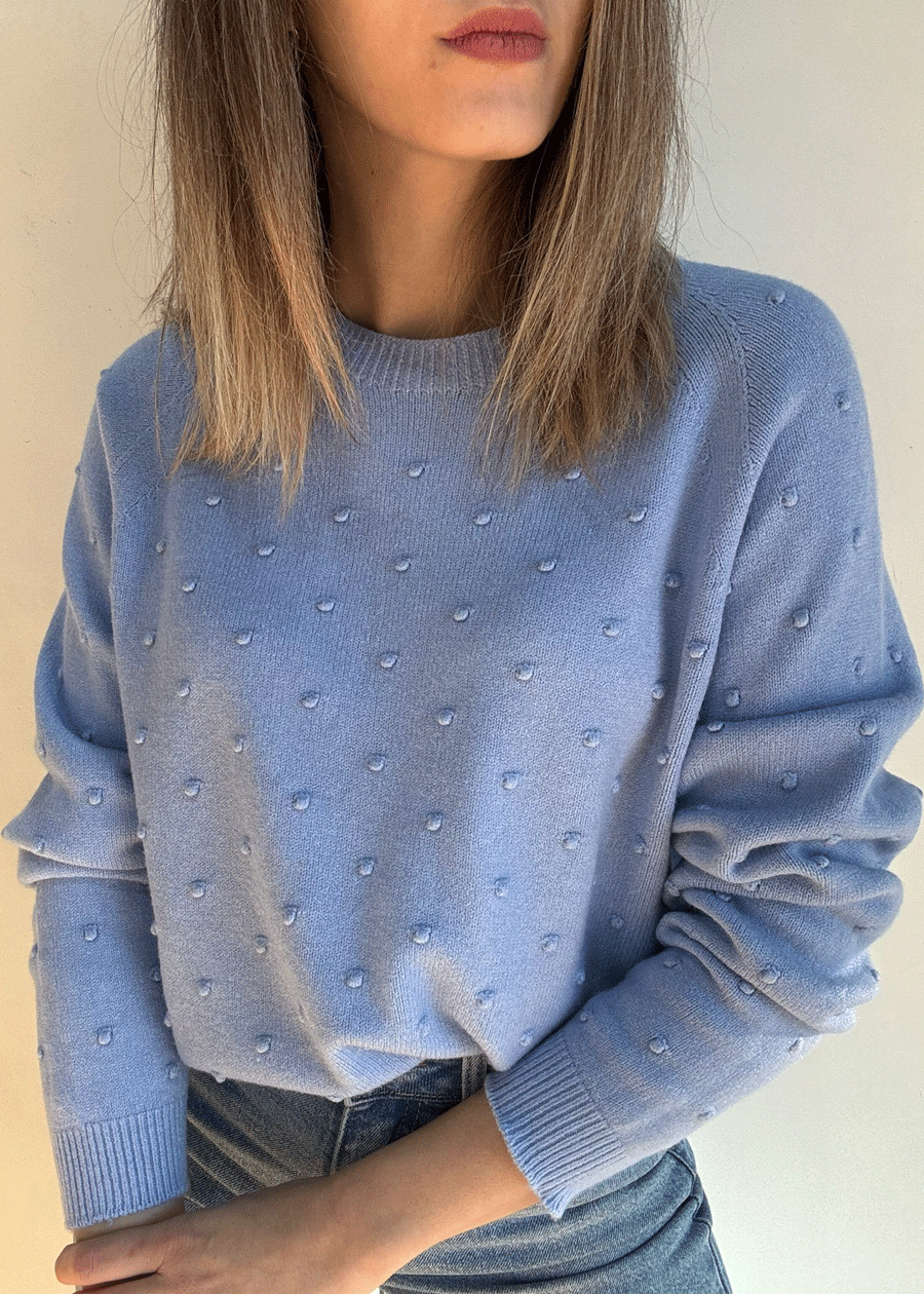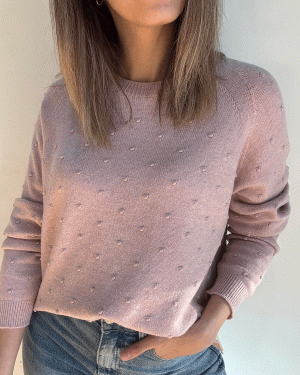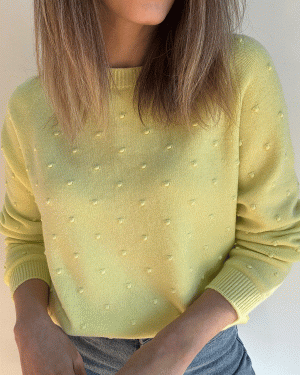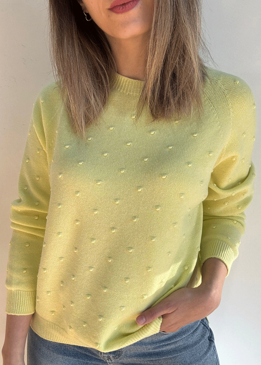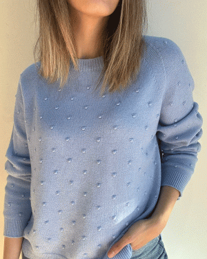 Suéter de manga larga con cuello redondo y detalle de puntitos.