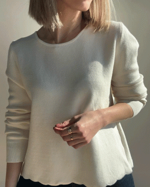 Jersey de cuello redondo y manga larga con detalle de espalda cruzada con acabados en pequeñas ondas.