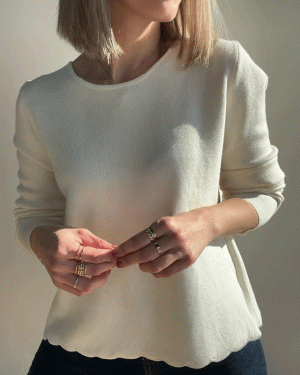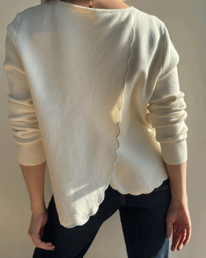 Jersey de cuello redondo y manga larga con detalle de espalda cruzada con acabados en pequeñas ondas. Talla única.