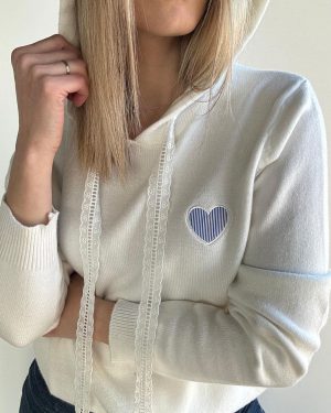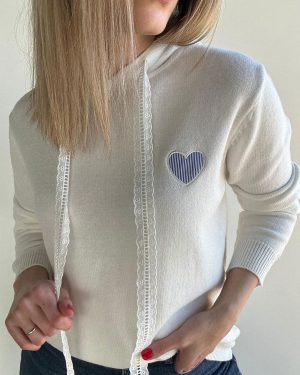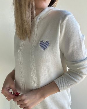 Jersey de manga larga con capucha y corazón navy bordado en la parte delantera con dos cordoncitos.