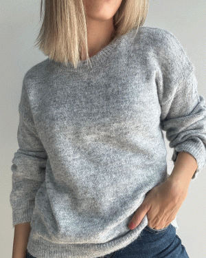 Jersey de cuello redondo y manga larga con el detalle de dos lazos en color rosa en la espalda. Talla única.