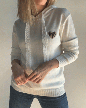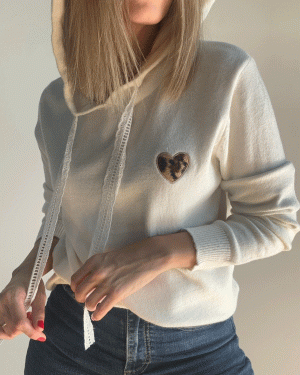 Jersey de manga larga con capucha y corazón en la parte delantera de animal print. Talla única.