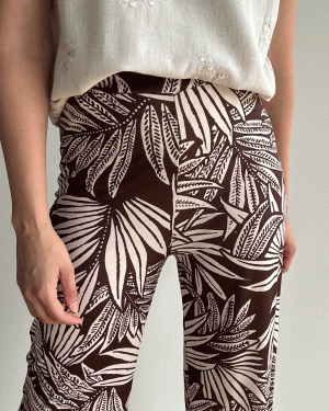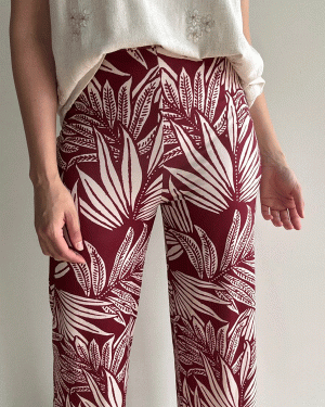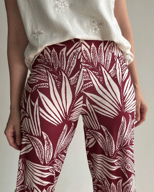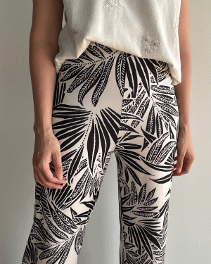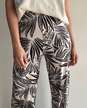 Pantalón estampado largo con elástico en la cintura. Tejido de licra fría que no se arruga y tiene mucha caída.