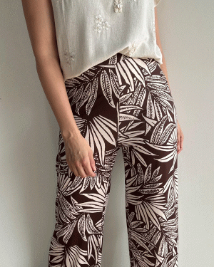 Pantalón estampado largo con elástico en la cintura. Tejido de licra fría que no se arruga y tiene mucha caída. Talla única.