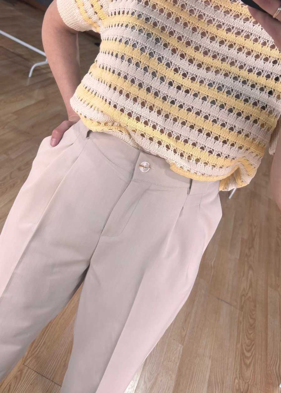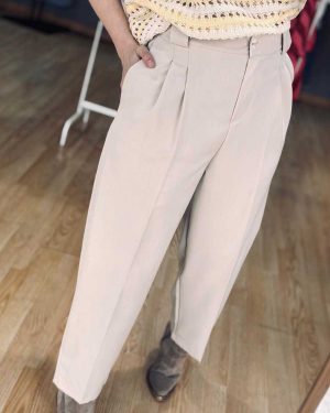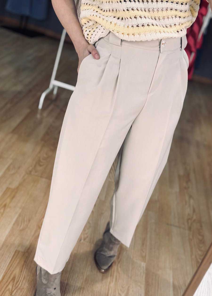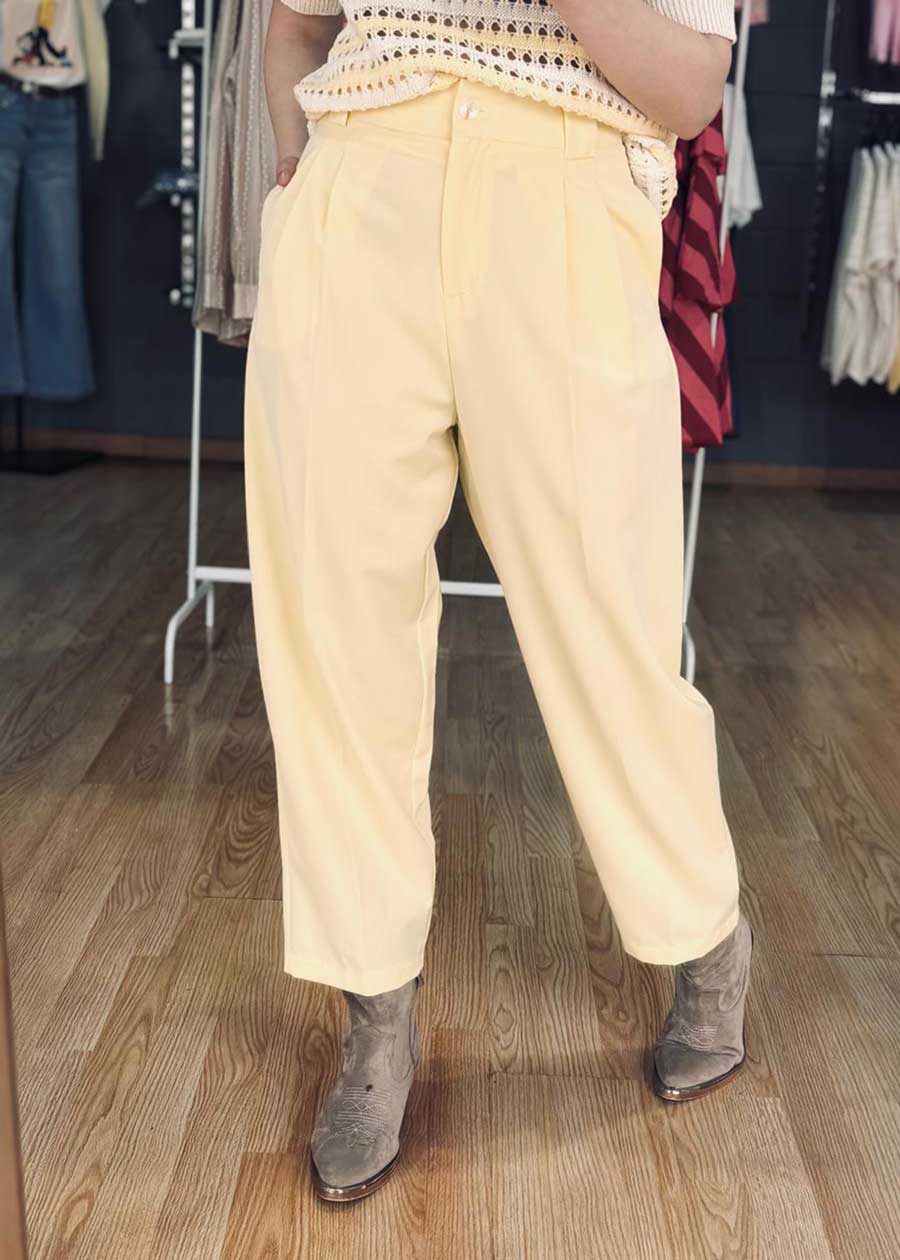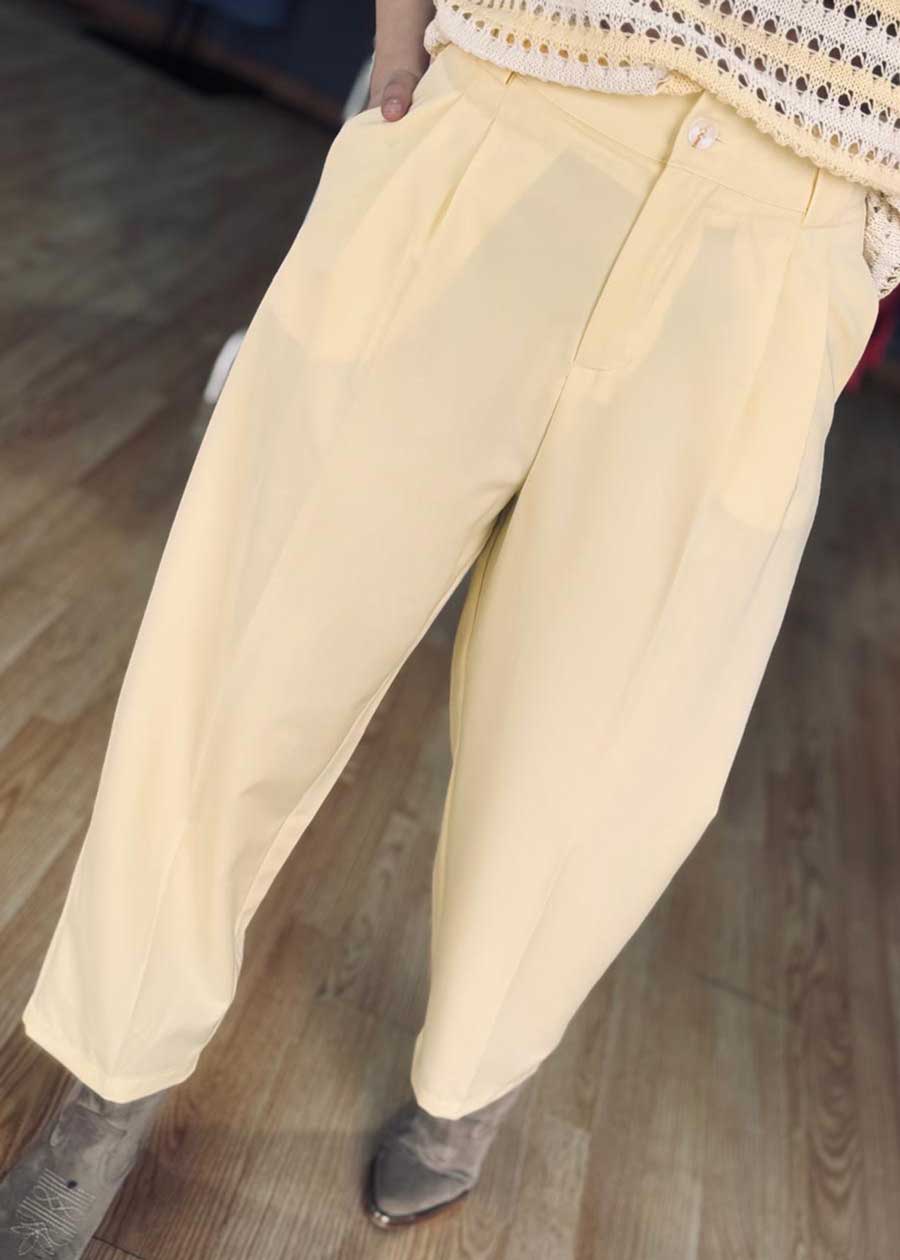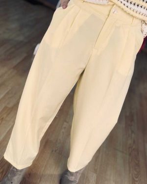 Pantalón largo liso con bolsillos y elástico en la cintura.