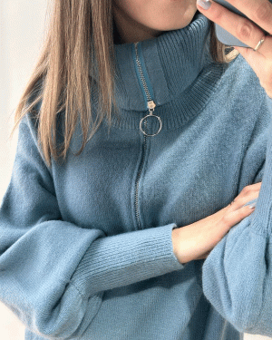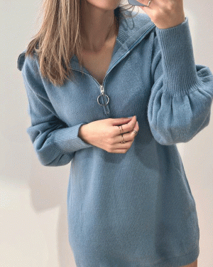 Vestido de punto con cremallera delantera y manga larga. Talla única.