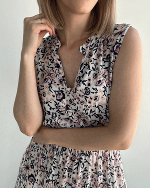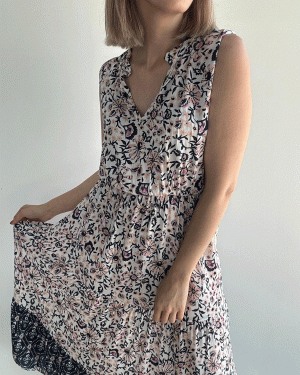 Vestido estampado largo sin mangas y escote pico. Talla única.
