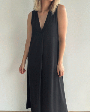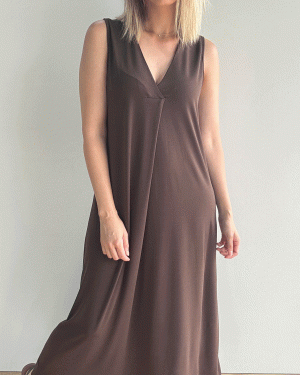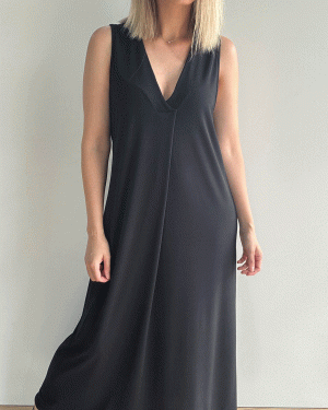 Vestido largo liso. El tejido es de licra fría, no se arruga y tiene mucha caída.