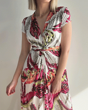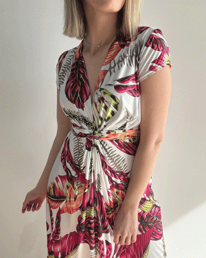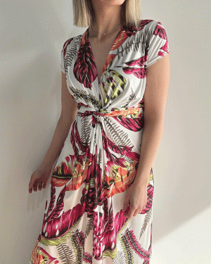 Vestido largo estampado con nudo delantero.